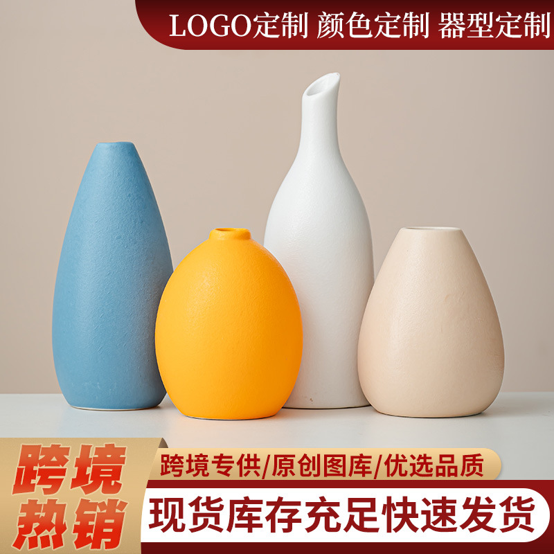 北欧陶磁花瓶シンプル高级感オーナメントドライフラワー天板生け花リビング置物