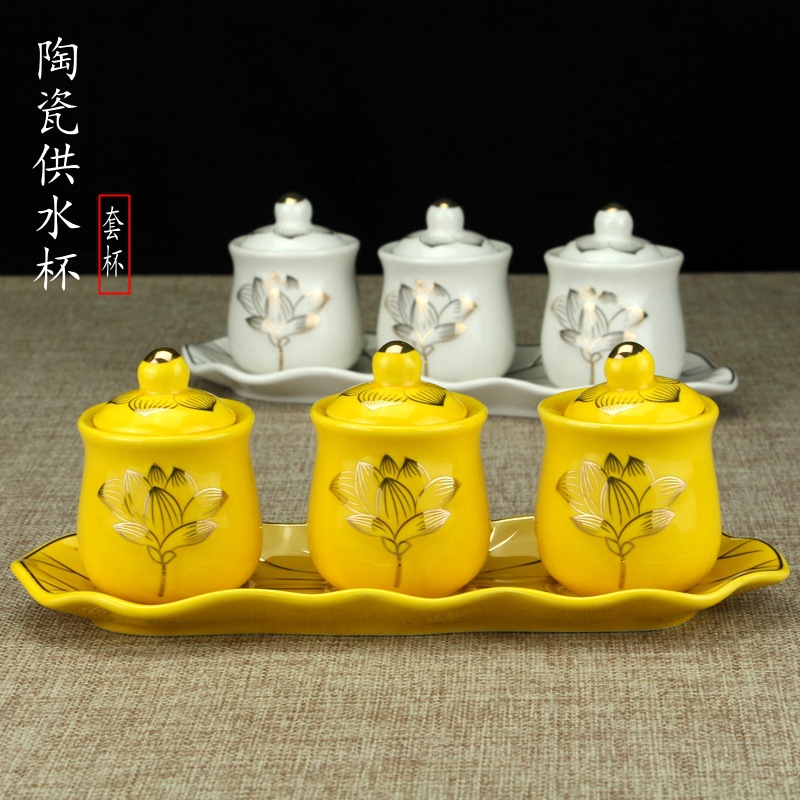陶磁器貢杯水杯観音杯仙家杯蓮花杯仏前供杯三連杯杯