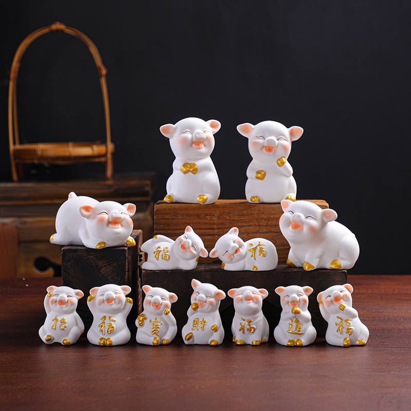陶磁器の招財は宝のブタの生肖の卸売りに入って金の工芸の装飾の創意の家の公の子の自動車の置物の五福の豚を描きます。