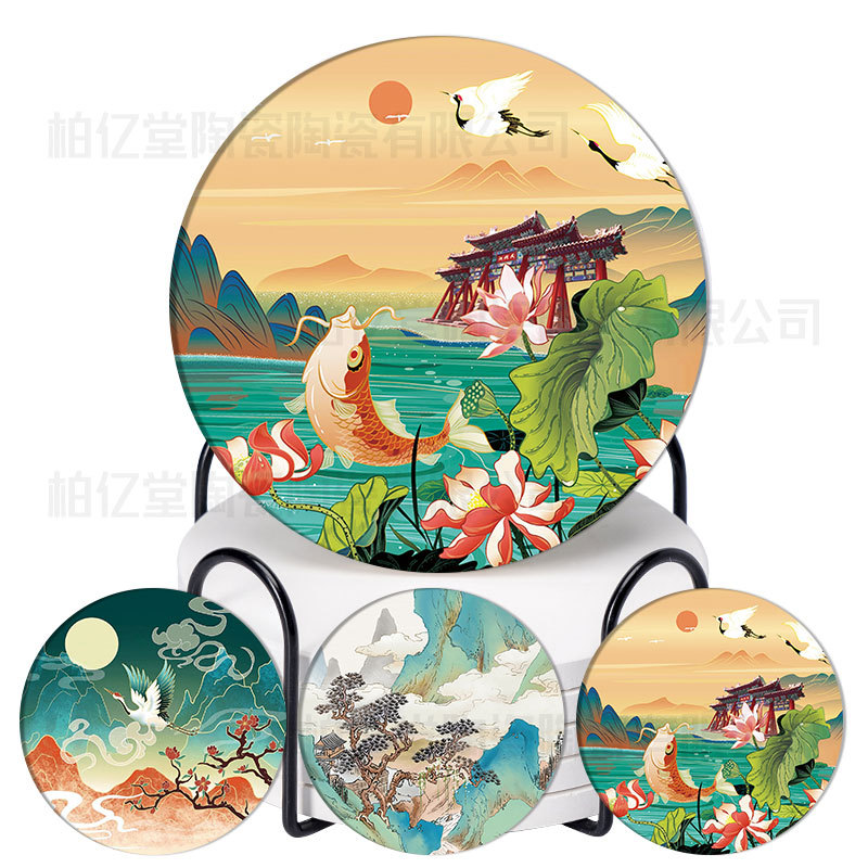 国潮円形断熱マットセラミックス吸収コルクカップマット文創国風ギフト工場卸売り支持制定