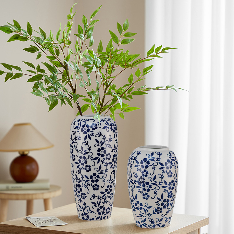 新しい中国風の青と白の磁器レトロな花瓶セラミッククリエイティブフラワーアレンジメントリビングルーム玄関装飾緑の植物植木鉢