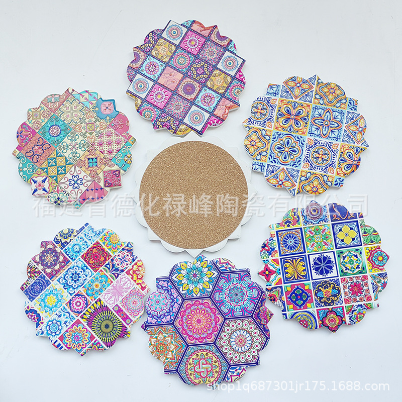 アマゾンクロスボーダー热い贩売クリエイティブ八角花セラミックカップパッド外国贸易吸水カップ3D印刷レストランセラミックコルク