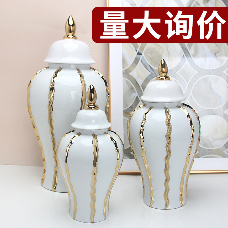 人気商品 工場直販 輸出向け ヨーロッパ風陶磁器将軍壺飾り 高級感あふれる金メッキテレビ台飾り