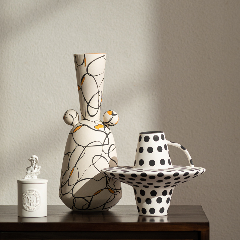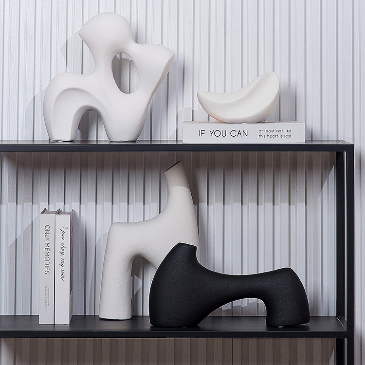 現代のシンプルで高級な芸術の置物の白黒の陶磁器の装飾の客間の書斎の本棚の本棚の創意のアクセサリの卸売り