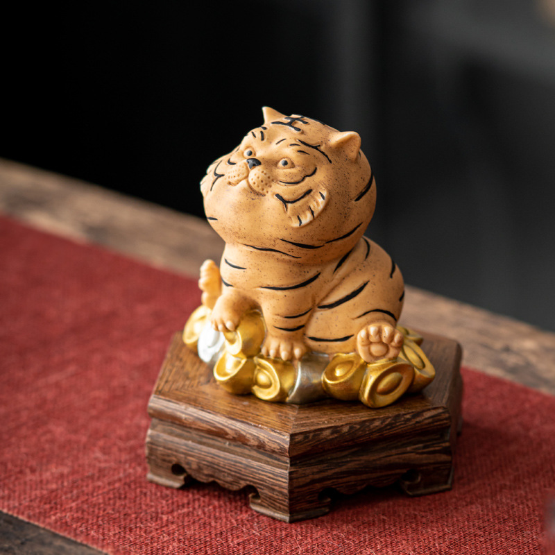 2022虎年マスコット置物太った虎車載オフィスデスクトップ装飾品トラ本命新年プレゼント