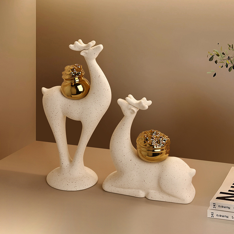 ベハンメイ 新中国風 クリエイティブ 鹿が金運をもたらす 陶器製置物 新築祝い 家具 玄関 リビングルーム デスクトップ装飾