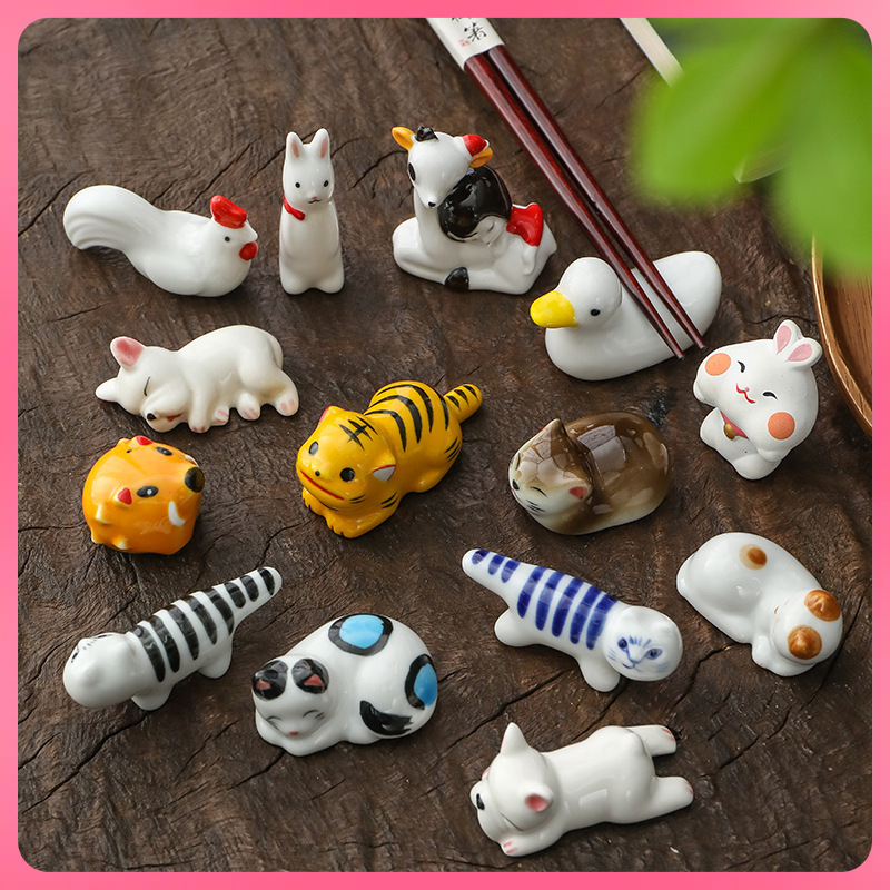 ◊ 和風雑貨 置物 花飾り 日本風 かわいい 動物 猫 犬 干支 陶器工芸品 箸置き