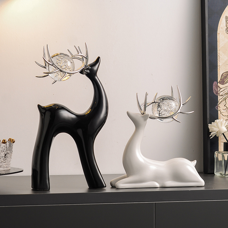 クリエイティブクリスタルボールセラミック鹿装飾品ライト高級リビングルームテレビキャビネットワインキャビネット家の装飾ハイエンドアート家具