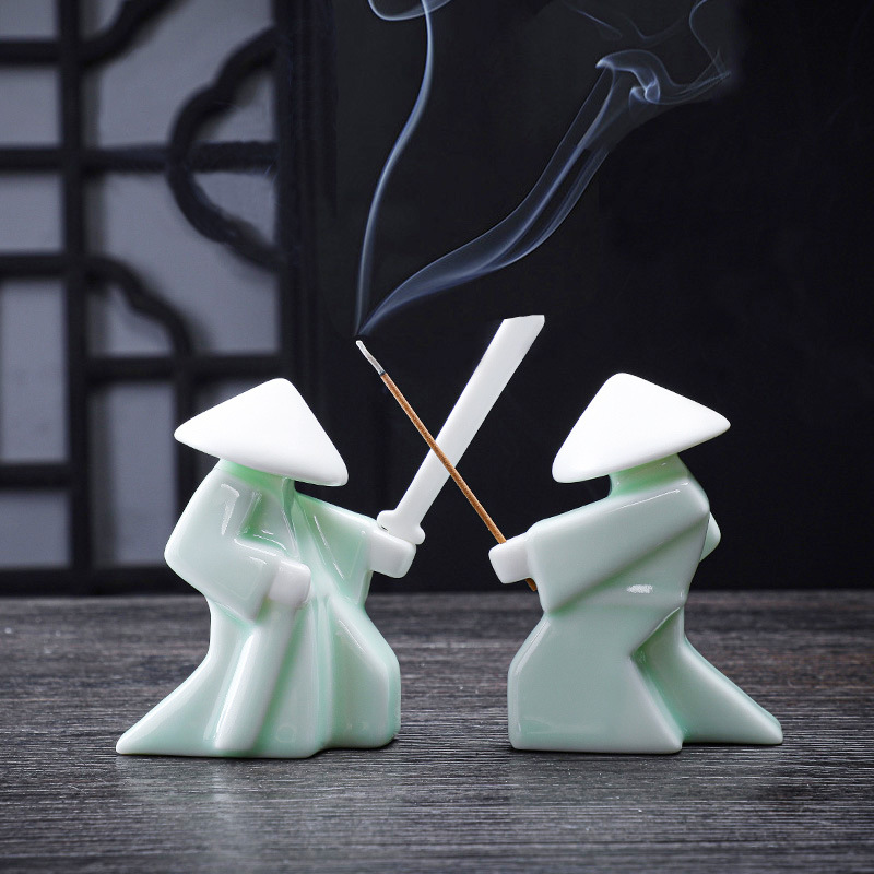 創意陶磁器江湖侠客置物新中国式家庭用室内香炉托武士香薫炉線香挿香座