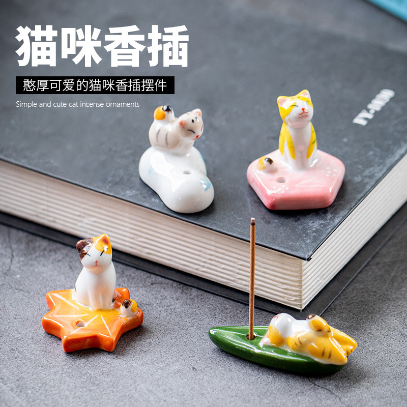 日本式の雑貨の猫の子猫の陶磁器の線の香ばしい棚の香りは陶磁器のかわいい置物のアイデアの家庭の置物を挿し込みます。