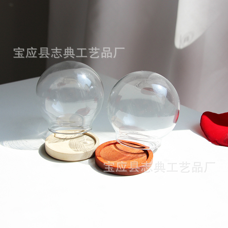 2cm- 4.5cm 球形ボトルクリスタルガラスカバー天然木紫檀台座DIY装飾品吊り下げ飾りミニチュアドールハウス