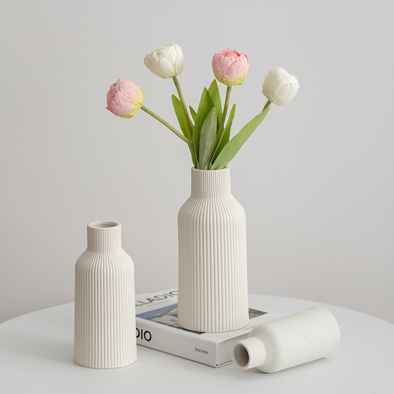 陶器花瓶3点セット、シンプル陶器花瓶、フラワーアレンジメント、ホームセット、フラワードライフラワーセット、越境限定