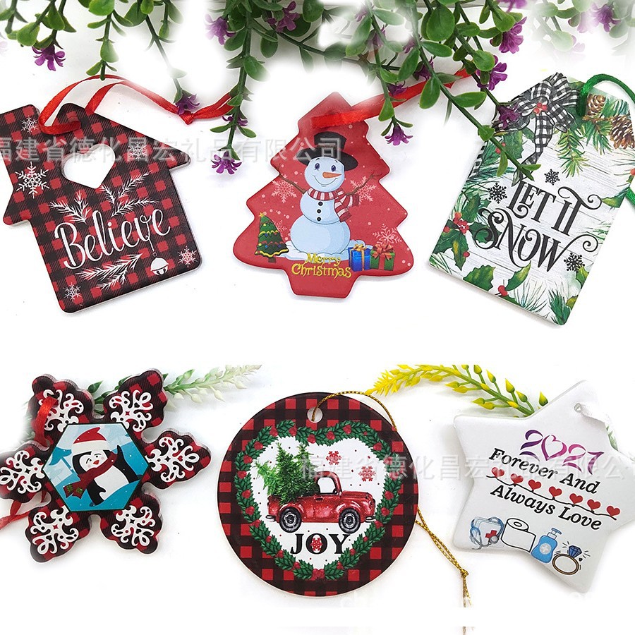 元のメーカーの陶磁器のクリスマスツリーのペンダントの陶磁器の贈り物のペンダントの両面の片面の吊り下げの札のカスタムロゴ