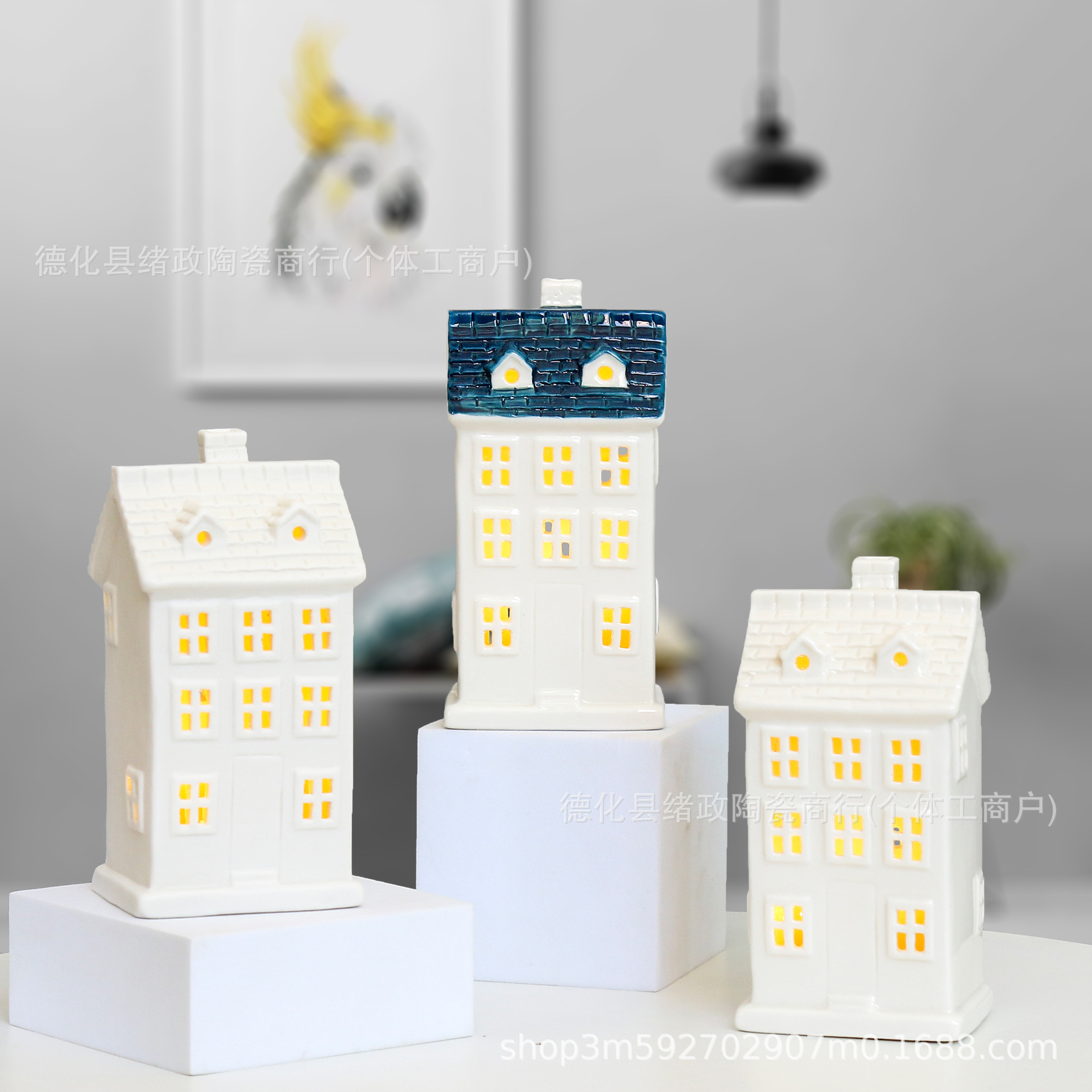 北欧陶磁器の燭台の小さい家は簡単なデスクトップの装飾の置物のアイデアの小屋の小さい夜の明かりのクリスマスの工芸品です。