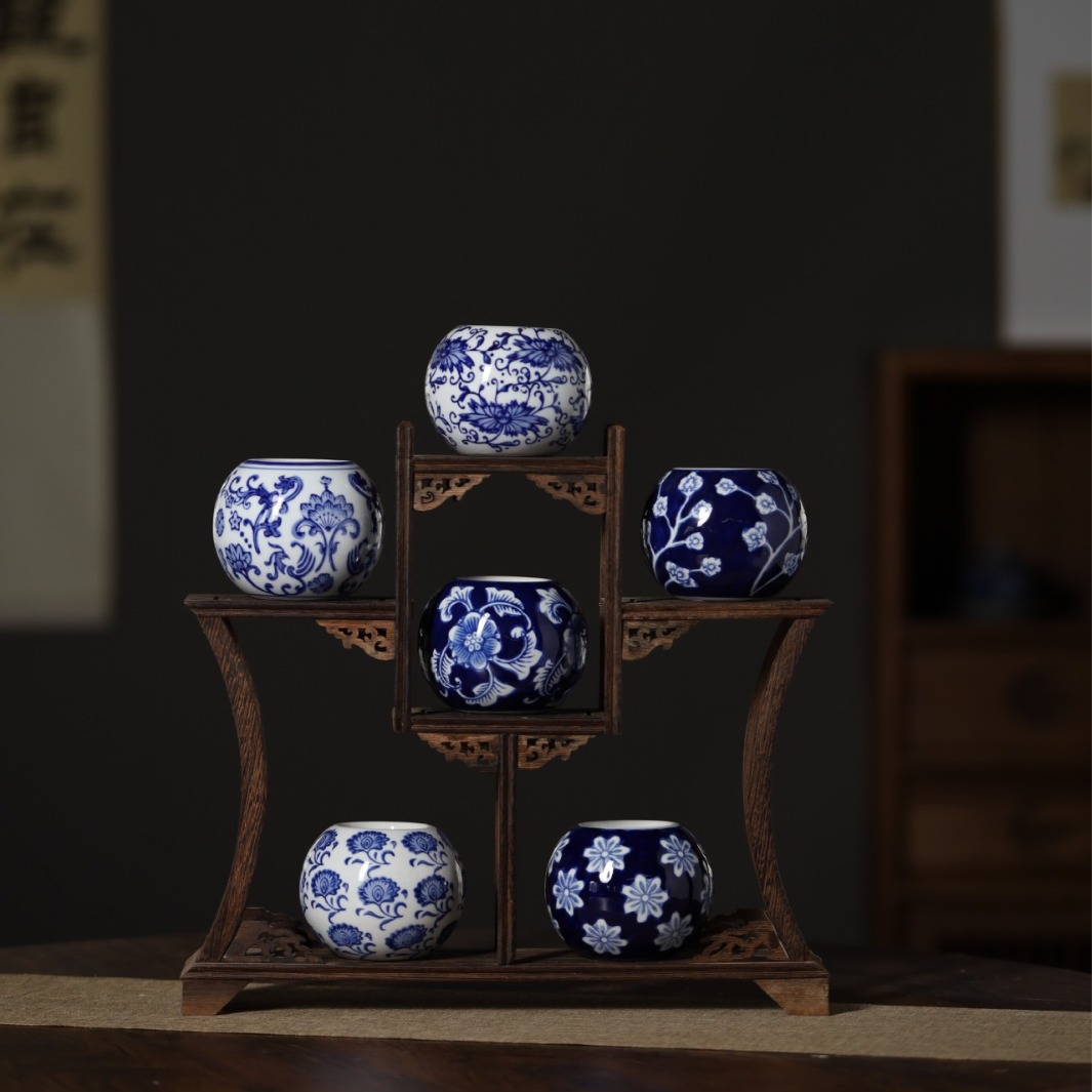 青花磁器の小さい燭台の新しい中国式の結婚祝いの燭台の家庭の部屋のアイデアの装飾品の陶磁器のろうそくの燭台の置物