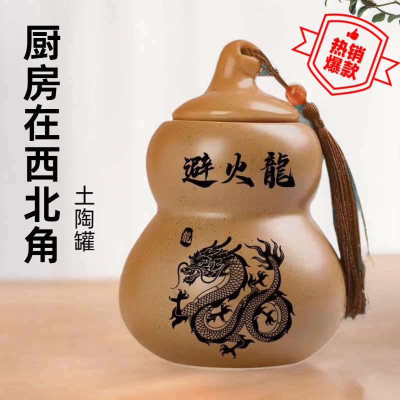 台所は西北の角の崑崙の5色の土の石の陶磁器の缶の陶土で火を避ける竜の瓶の葫芦の乾位の置物の卸売りを避けます。