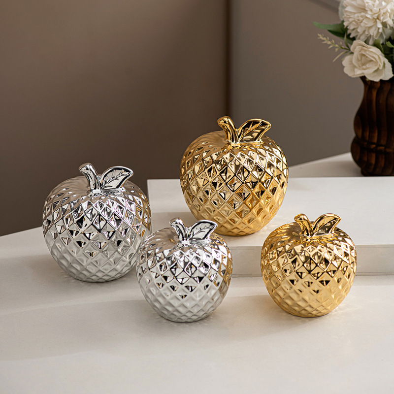 現代陶磁器金銀リンゴ工芸品置物現代シンプルな家庭客間デスクトップ装飾クリスマスプレゼント