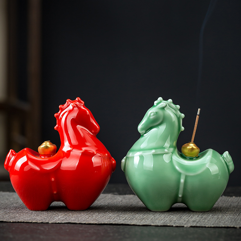 創意的に馬の陶磁器の小さい置物を揺らします。