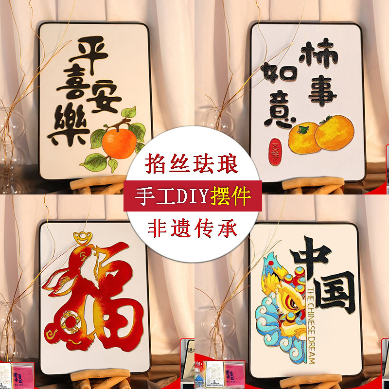 国風非遺景泰青絞め糸エナメル画手作りdiy児童製作材料包幼稚園活動
