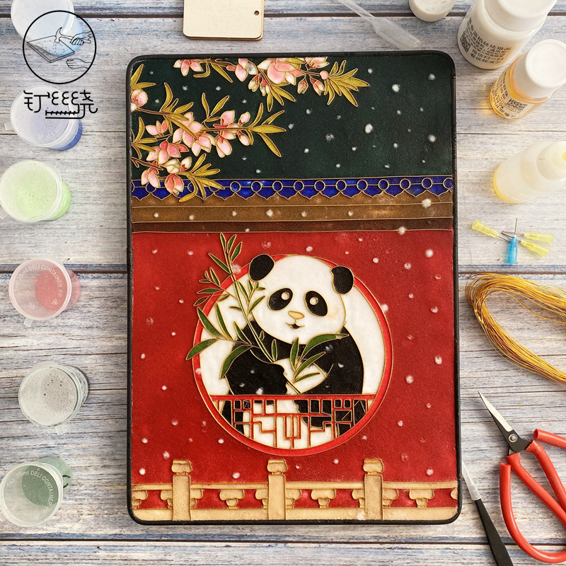 中国風非遺品手作りdiy故宮文創パンダ景泰青絞め糸エナメル画diy塗り飾り掛け画