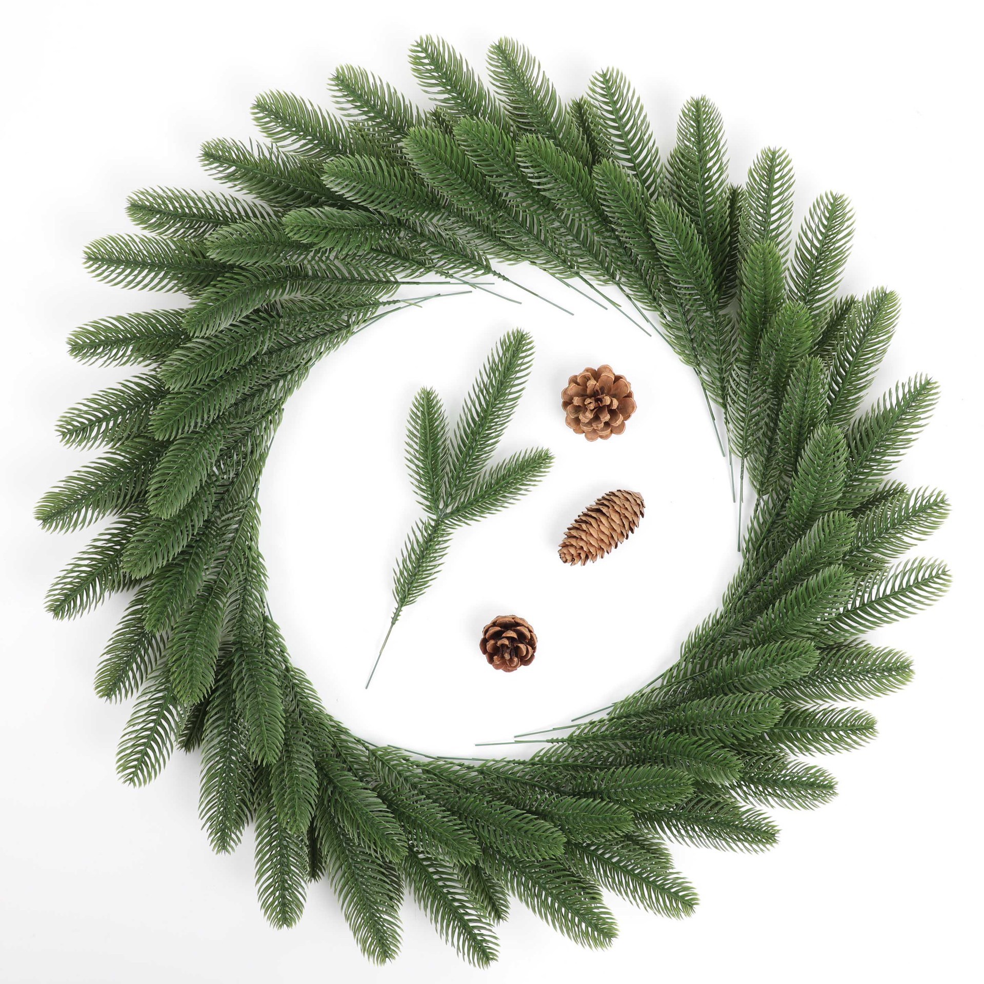 クロスボーダー人工松針枝フラッシュ葉クリスマス花卉DIYホームガーデン装飾花輪配置27CM