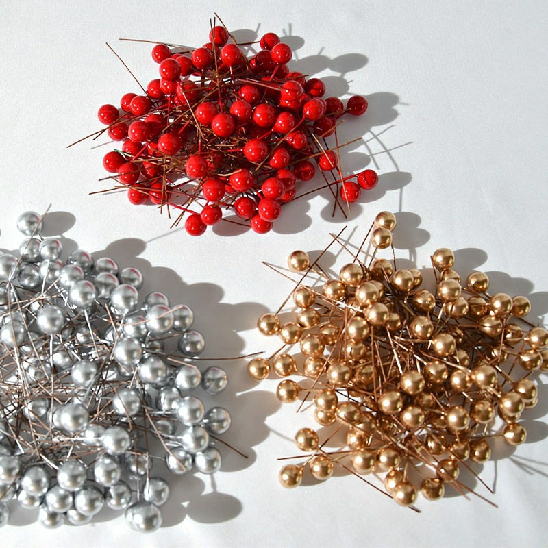クリスマスレッドフォームベリー、金珠、銀珠、クリスマスリース、松葉素材、ギフトボックスデコレーション、小さな赤い果物、幸運の果実