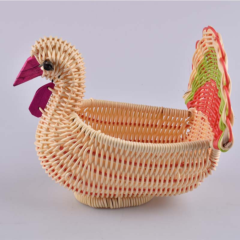 テーブルの上に物を置くかごの小さい七面鳥の形の家庭用デパートの収納は草のかごの藤を編んで果物のかごを編みます。
