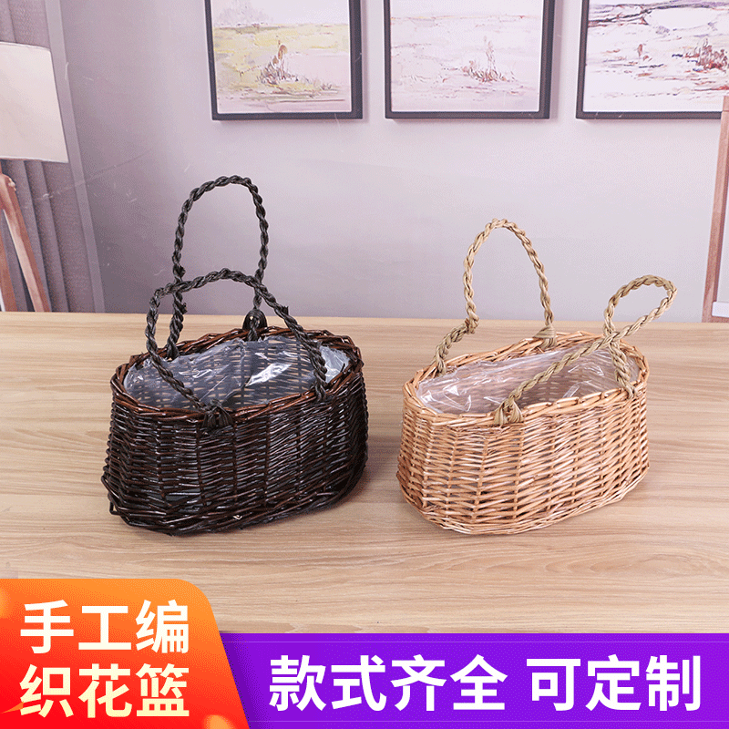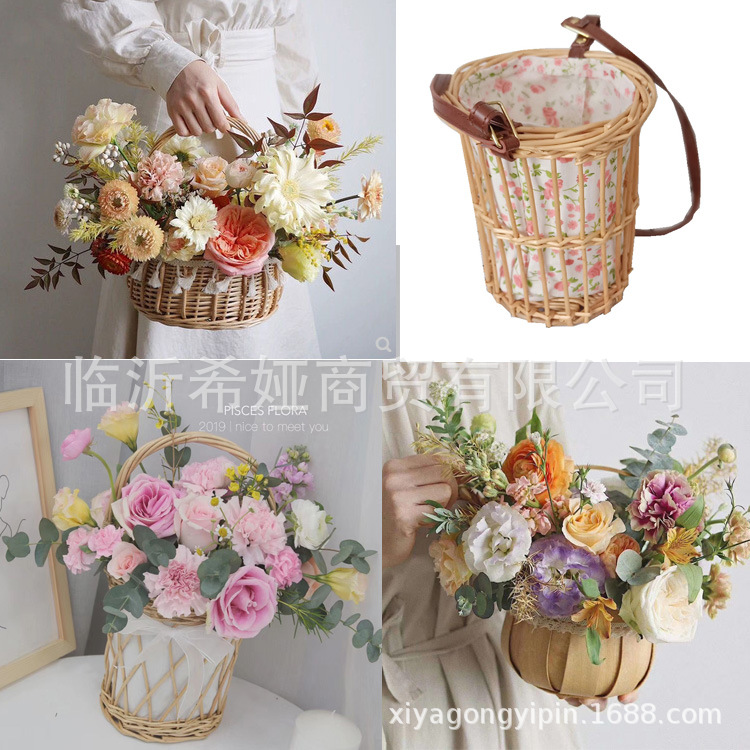 柳細工の花屋のバスケット、レースの手提げ花かご、フラワーアレンジメントバスケット、クリエイティブバスケット、装飾バスケット、純手作り、手作りの創作