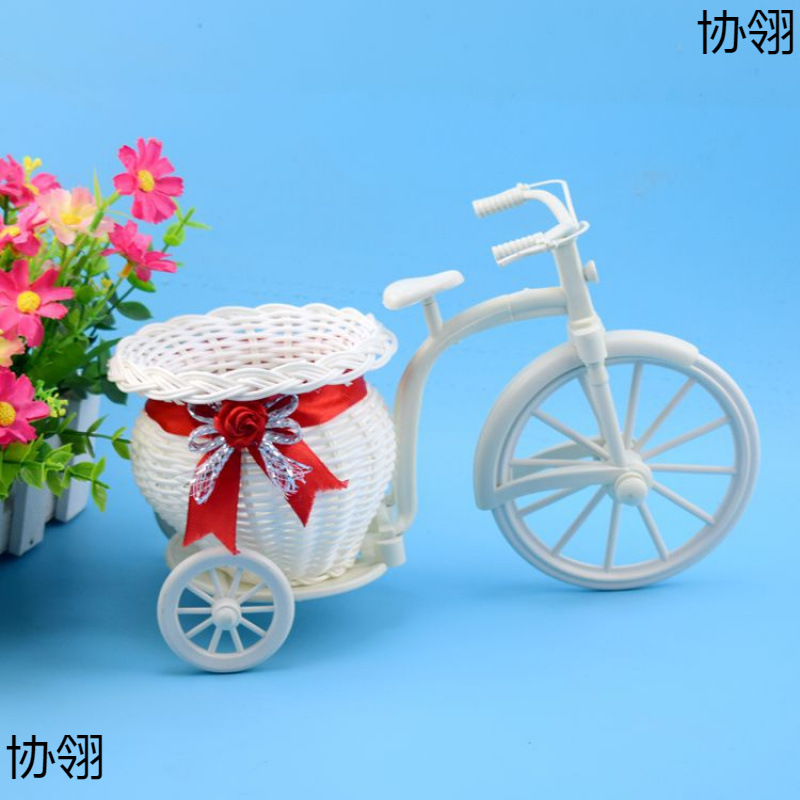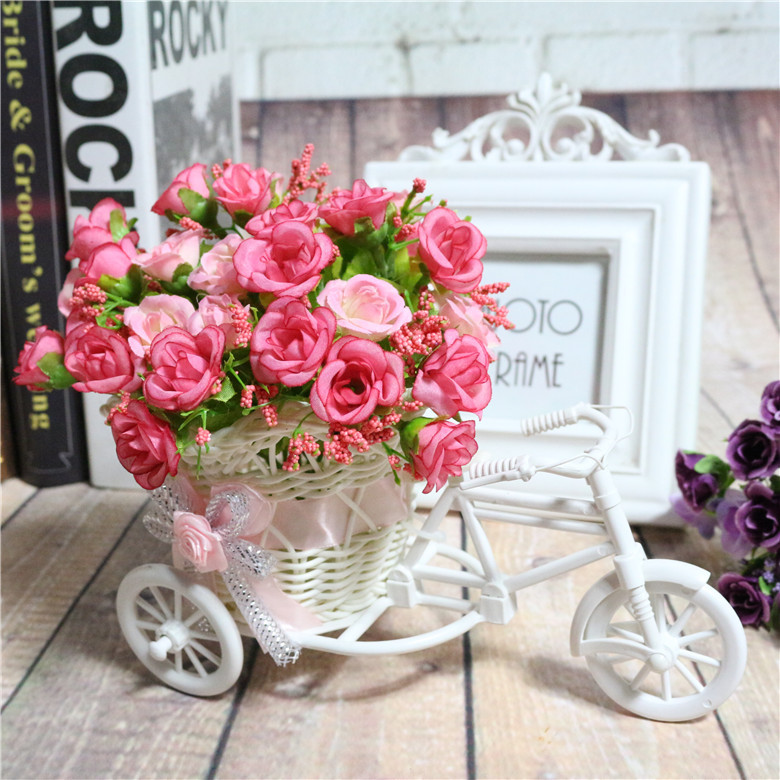 家庭のシミュレーション花の小さい花車のセット/自転車は花のかごの偽の花の絹の花のダイヤモンドのバラのセットを編みます。