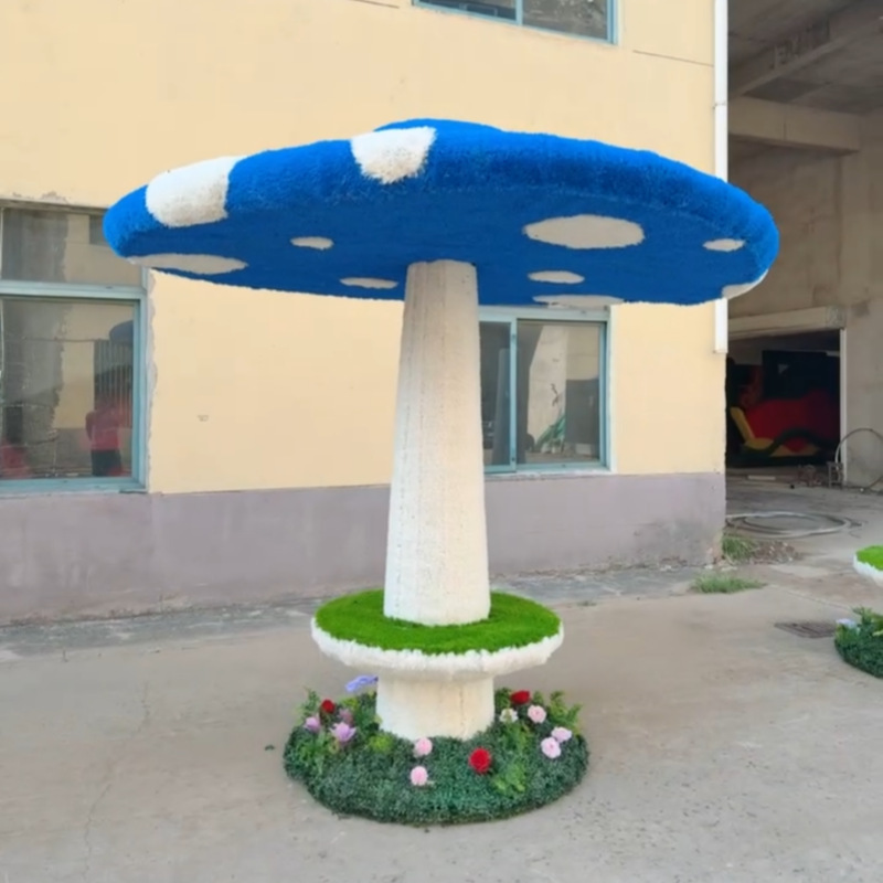 仿真动物蘑菇草帽大凉亭绿雕造型户外绿雕造型稻草工艺品打卡美陈