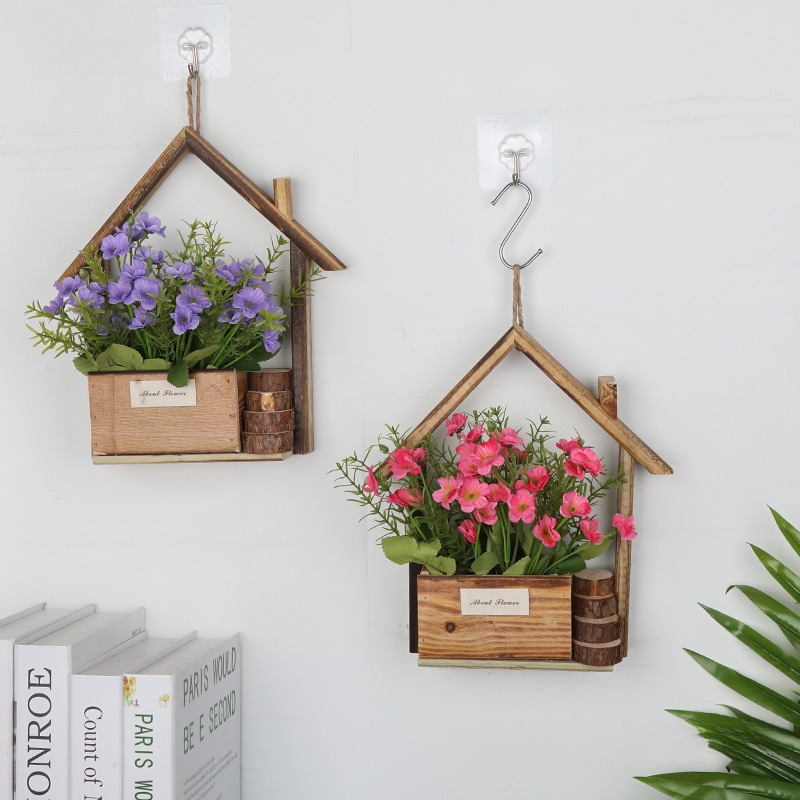 ヨーロッパの木製吊りポット壁装飾クリエイティブ壁掛け植木鉢フラワーバスケットホームリビングルームの壁の装飾 Bidezhu