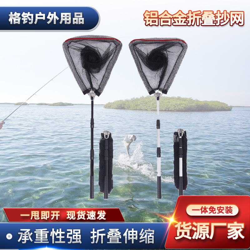 国境を越えたアルミニウム合金三角模造網一体式携帯折り畳み魚網伸縮可能な魚網漁具漁網卸売り