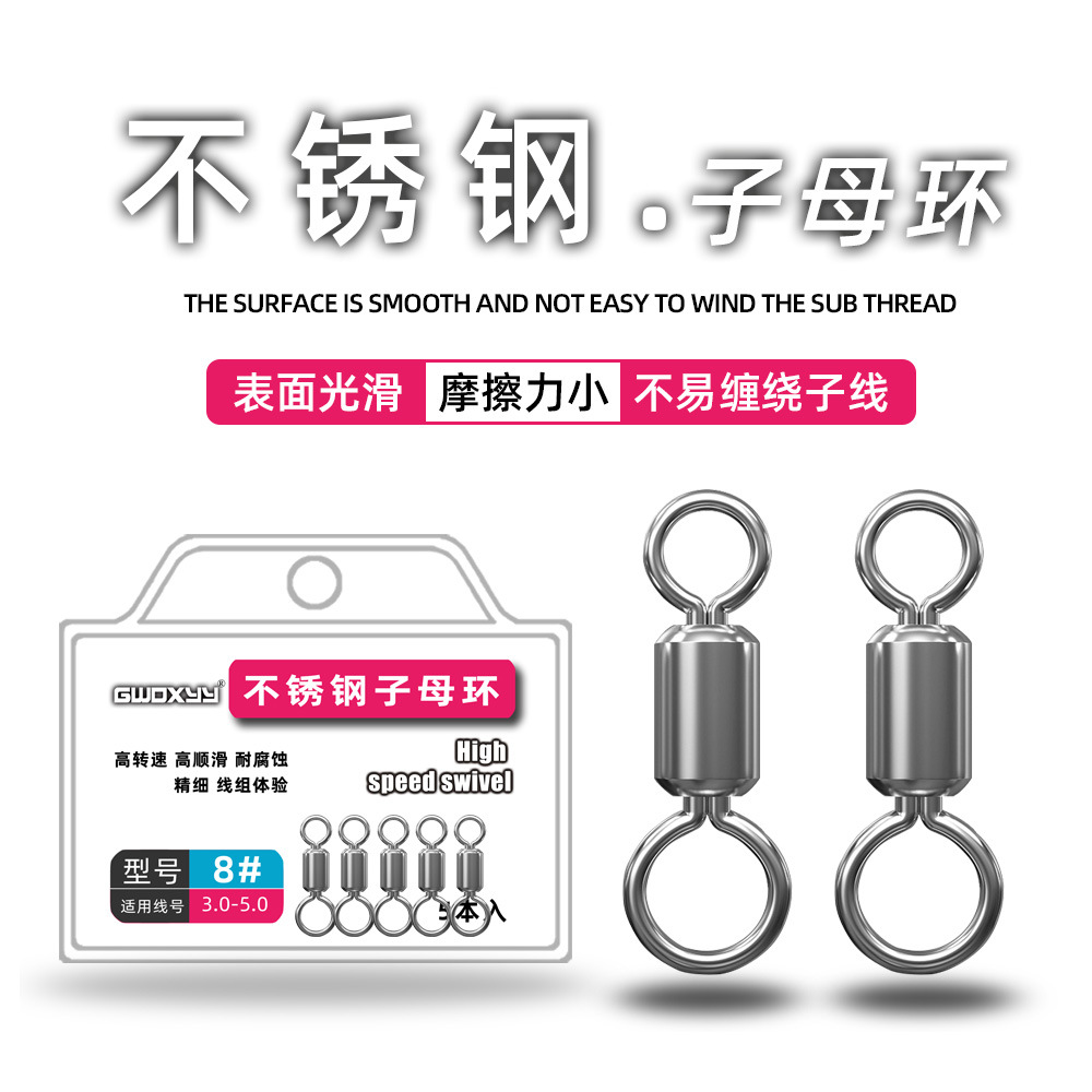 八字環子母環ステンレス合金銀黒色高速8字環漁具メインラインセット小部品pvc袋入り