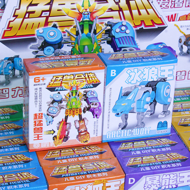 子供の新しいdiyは積み木の5合1変形恐竜の機甲の戦士をつづり合わせておもちゃの積み木の2元の店の百貨を挿し込みます。