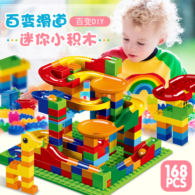 クロスボーダー百変シュートのボールの積み木の子供のおもちゃの168粒の小さい粒子の軌道は組み合わせて知育diyのおもちゃを詰めます。