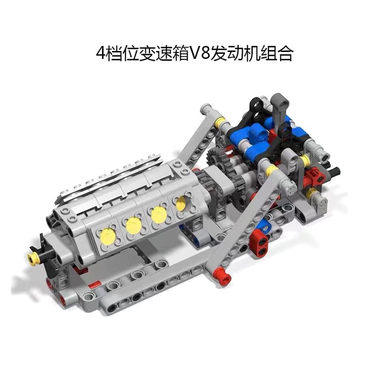 国産MOC互換4段変速機v 8エンジンセット積み木モデル成人電動玩具