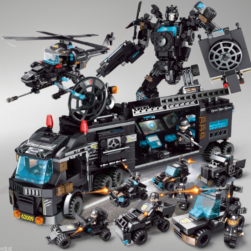 レゴ互換エンジニアリングブロック、子供向け知育組み立て玩具、小粒子ミリタリー特殊警察、男の子と女の子向けミリタリーモデル