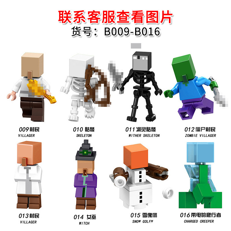 B009-B016私の世界の子供の人形の積み木の村民の魔女の頭蓋のゾンビは外国貿易のopp袋を詰めます。