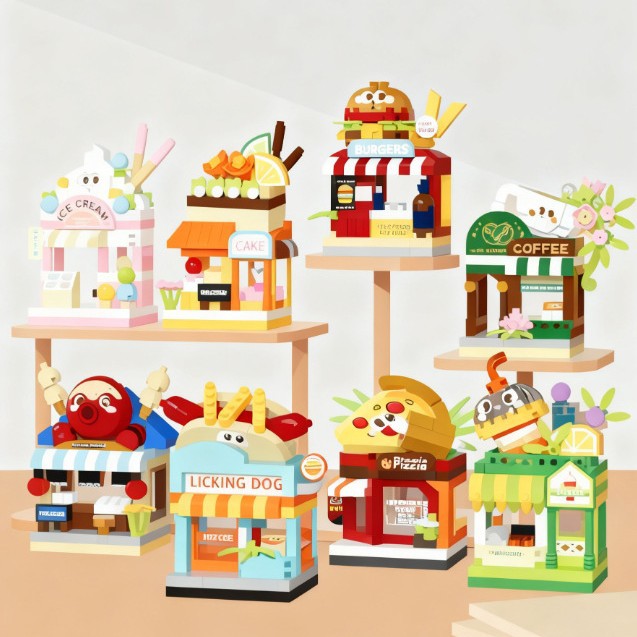 ブラインドボックスミニチュアミニマイクロ粒子モデルビルディングブロックベーカリースーパーマーケット食品おもちゃドールハウスシーン装飾品小屋