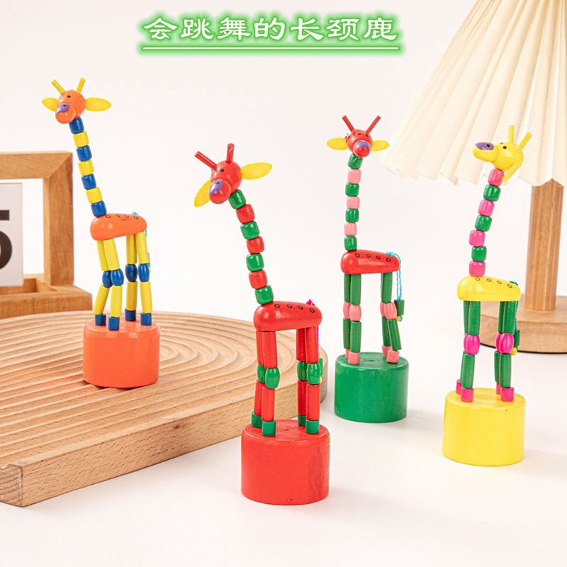 踊ることができるキリンの人形の漫画の揺れ動く駅の桶の木製の動物の指の人形のノスタルジックな益智のおもちゃ
