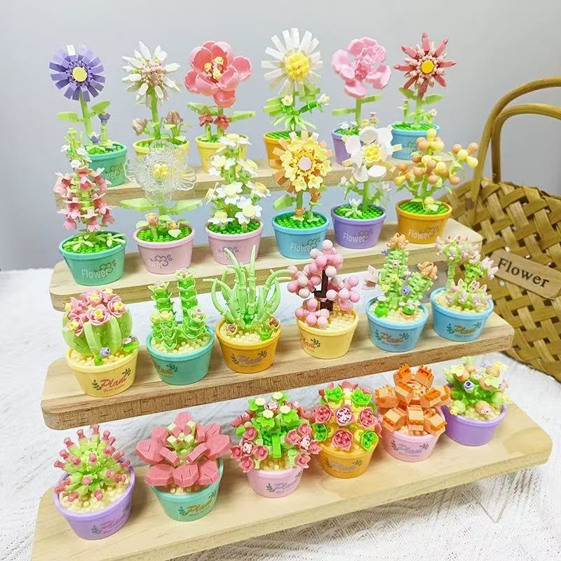 レゴビルディングブロック、鉢植え、多肉植物ビルディングブロック、女の子用組み立ておもちゃ、国境を越えた世代、子供用2025年の新しいおもちゃと互換性があります。