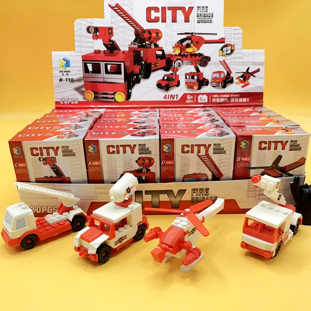 儿童益智DIY拼装积木飞机4合1变形合体玩具消防车拼插积木2元礼品