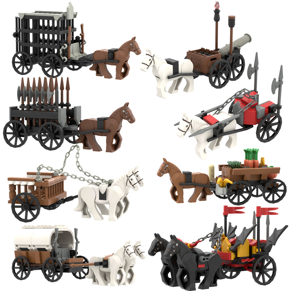 積み木moc馬車中世戦車囚人車軍事武器部品兵器の組み合わせ小粒子シーンモデル