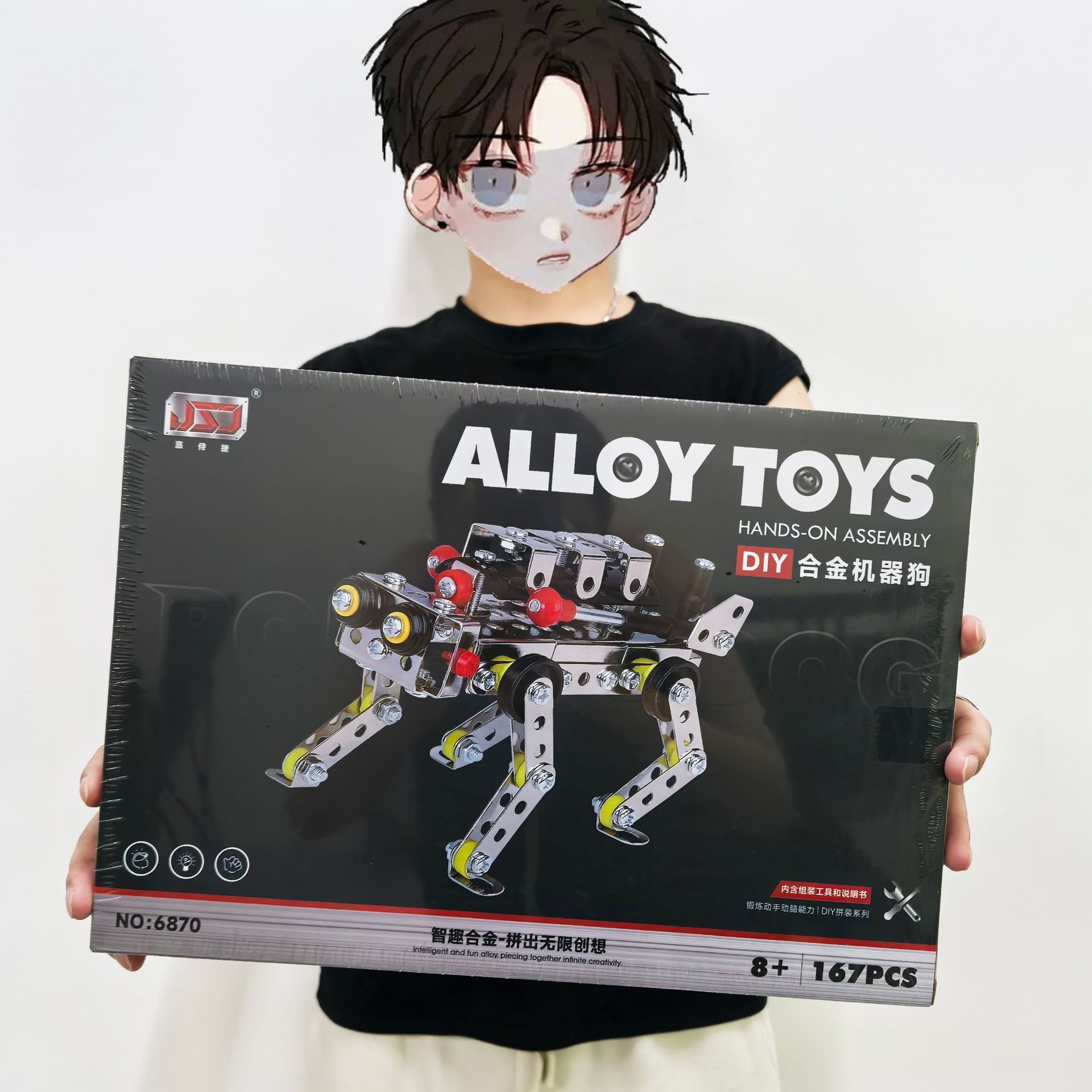 子供の積み木のおもちゃの金属のパズルの模型はツールの越境の男の子を組み立てます。