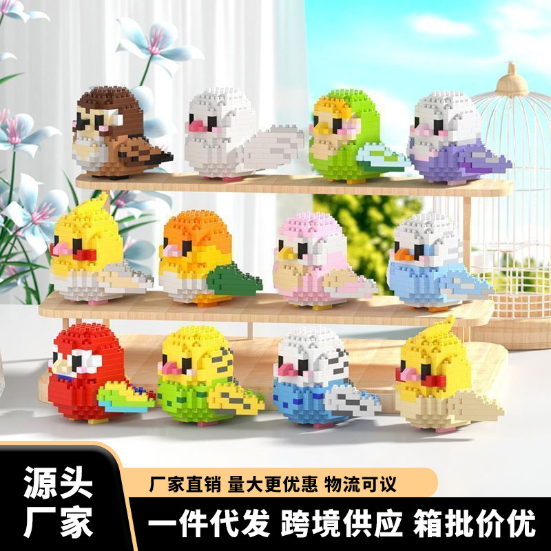 国産ブロック、極小粒子、漫画風小さなオウム、鳥ブロック、男の子と女の子向けの鳥類知育組み立て玩具、置物