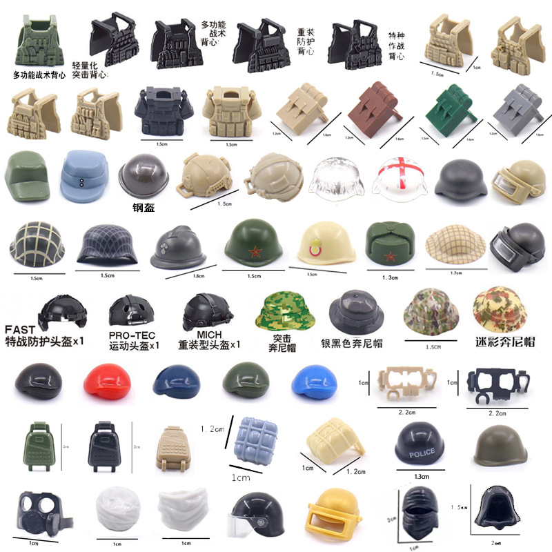 クロスボーダー軍事積み木人仔部品ヘルメットベストリュックサックベルトベレー帽は装備を着ておもちゃを作ります。