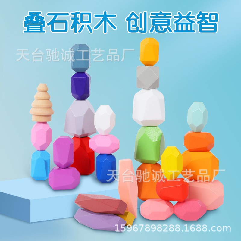 多角形畳石積み木セット子供の木製シミュレーション早教積み木クロスボーダーは知育玩具卸売りに特化している