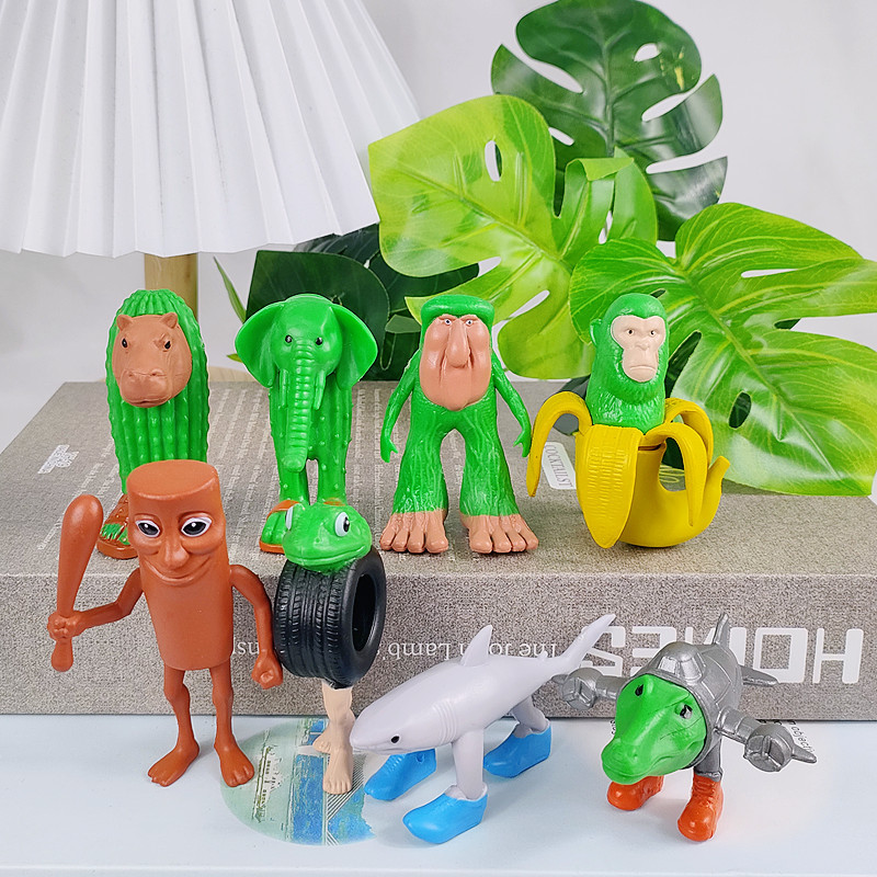 8つの新しい国境を越えた製品、山と海の古典フィギュア、木の棒、靴を履いた人間、サメ人形モデル、デスクトップ装飾品