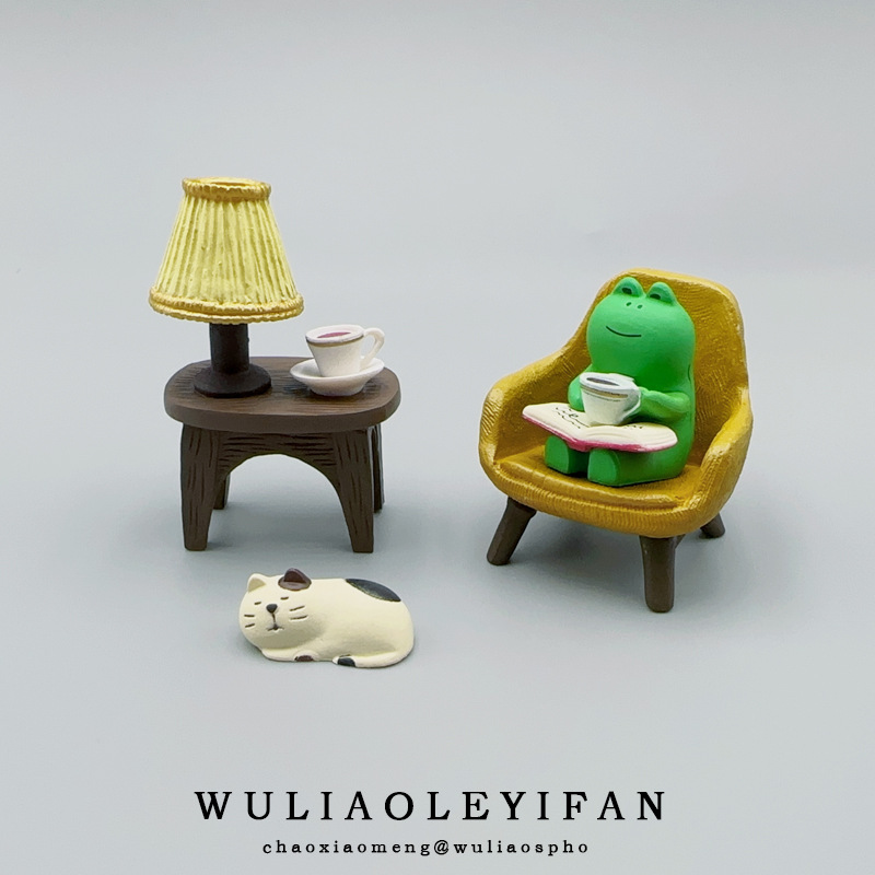 Zakkaカエルのコーヒーのロッキングチェアdiyの置物の家庭の萌え粒の潮はケーキの車のデスクトップの樹脂の置物を遊びます。