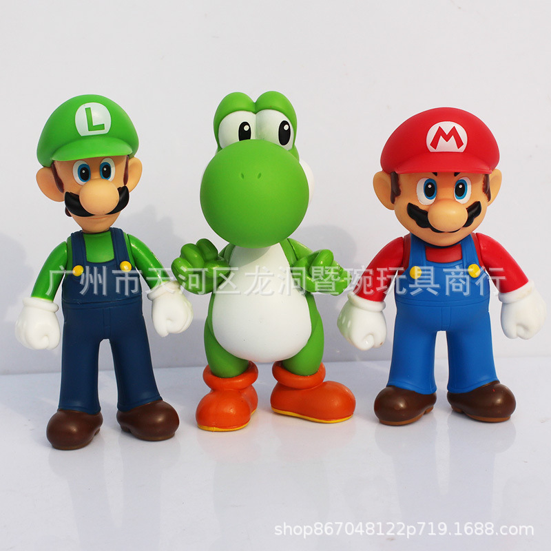 スーパーマリオ模型3種類のエナメルマリオルイージーヨウシードラゴンの手で人形の置物を作っています。